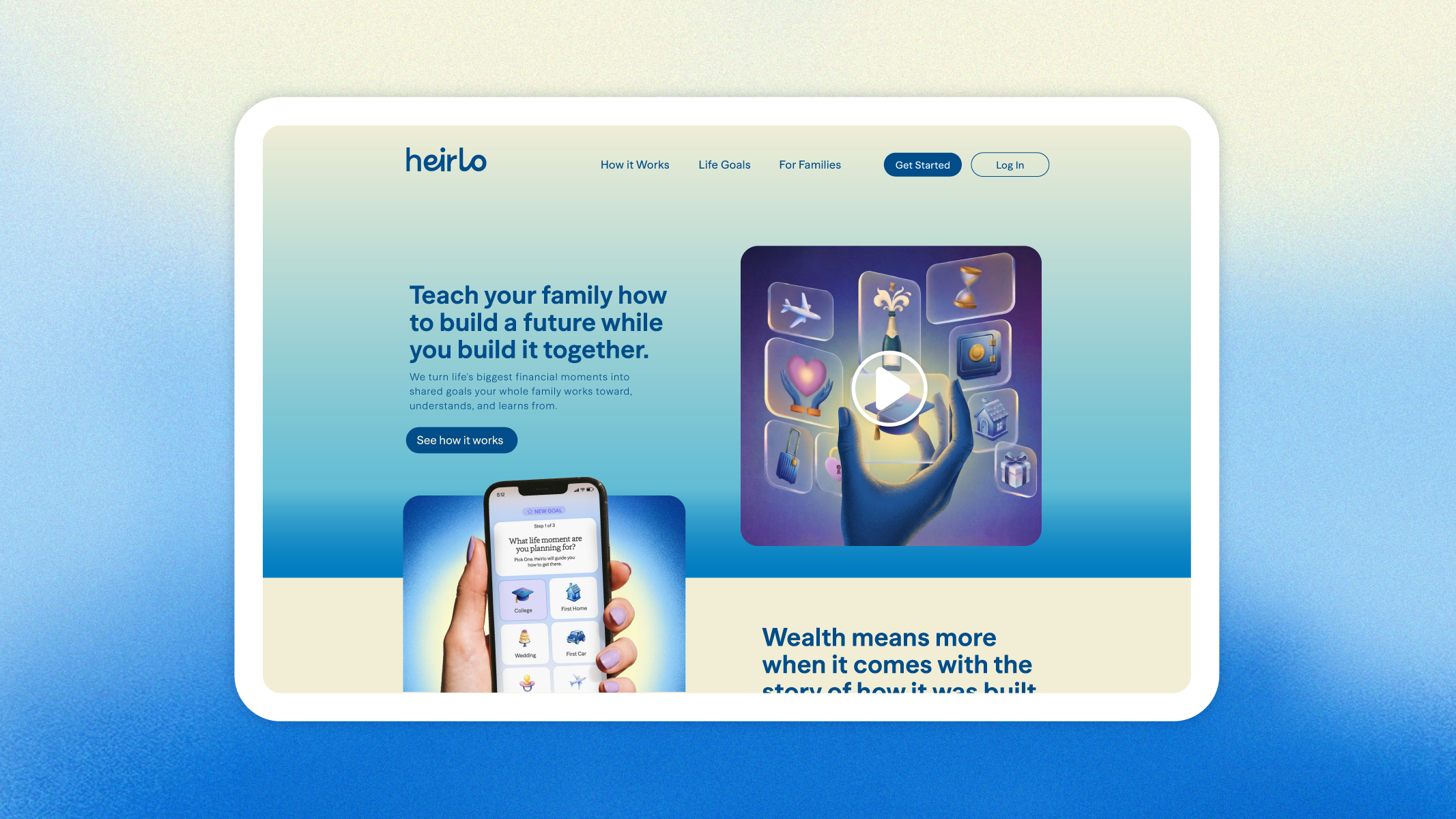 Most people learn about money too late, usually when they already need it. Heirlo is a family financial literacy platform disguised as an investing app. The challenge was to shift the paradigm from private, individual investing to a visible, shared family experience. It needed to do for family saving what Venmo did for peer-to-peer spending: make it social, transparent, and purposeful, teaching every generation why money moves the way it does.